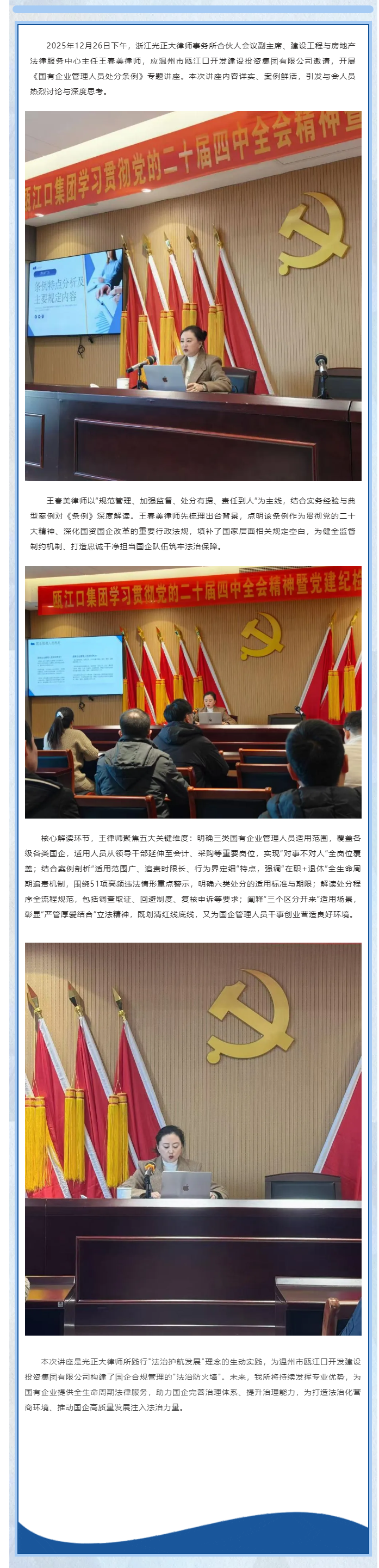 光正大所王春美律师受邀开展《国有企业管理人员处分条例》专题讲座