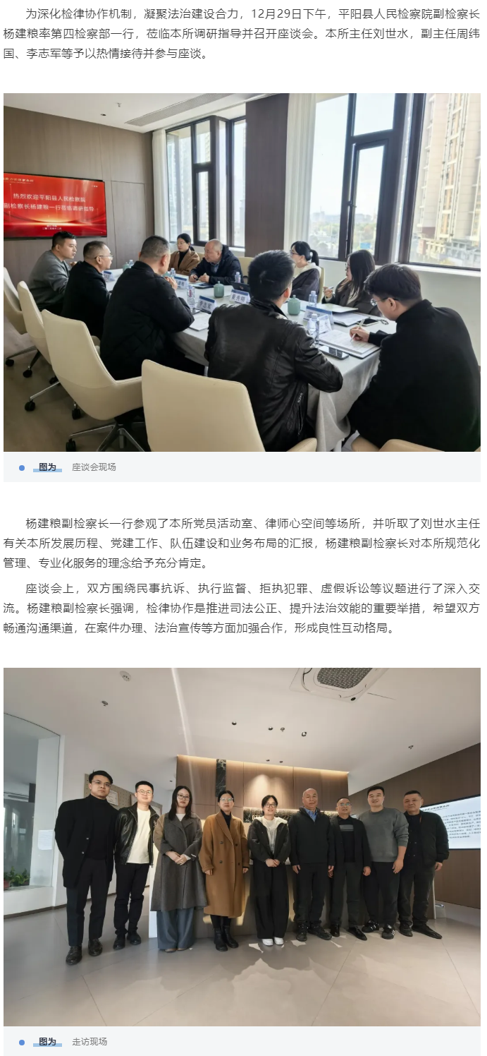 平阳县人民检察院副检察长杨建粮一行莅临新质力所调研指导