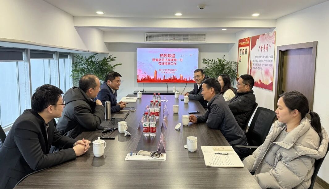 2026年2月25日下午,温州市瓯海区司法局党组书记王绍起一行走访浙江大界律师事务所,实地参观新装修的办公场所,并与律所负责人座谈交流。大界律师事务所主任项建挺、首席合伙人黄雪巨等热情接待。