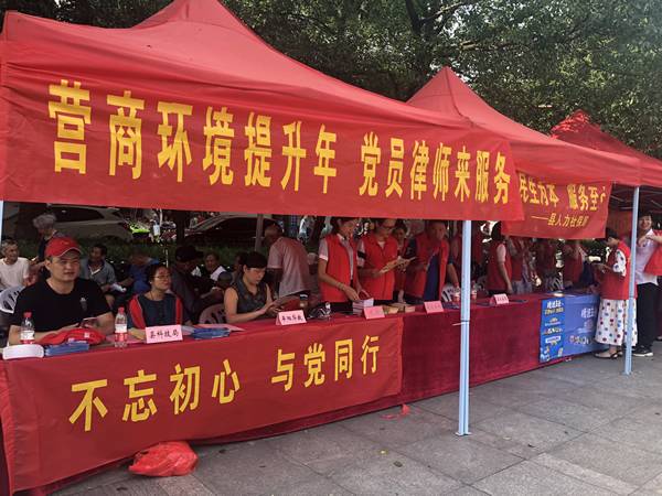 为隆重纪念中国共产党成立97周年,深入贯彻落实党的十九大会议精神,围绕县委县政府中心工作,充分发挥律师行业法律服务职能和党员律师先锋模范作用。 6月27日,平阳县司法局联合县市场监管局、县科技局等单位,以“红七月 服务月”为主题,组织党员律师等一批志愿者在昆阳镇曦龙广场开展营商环境法律服务活动。
