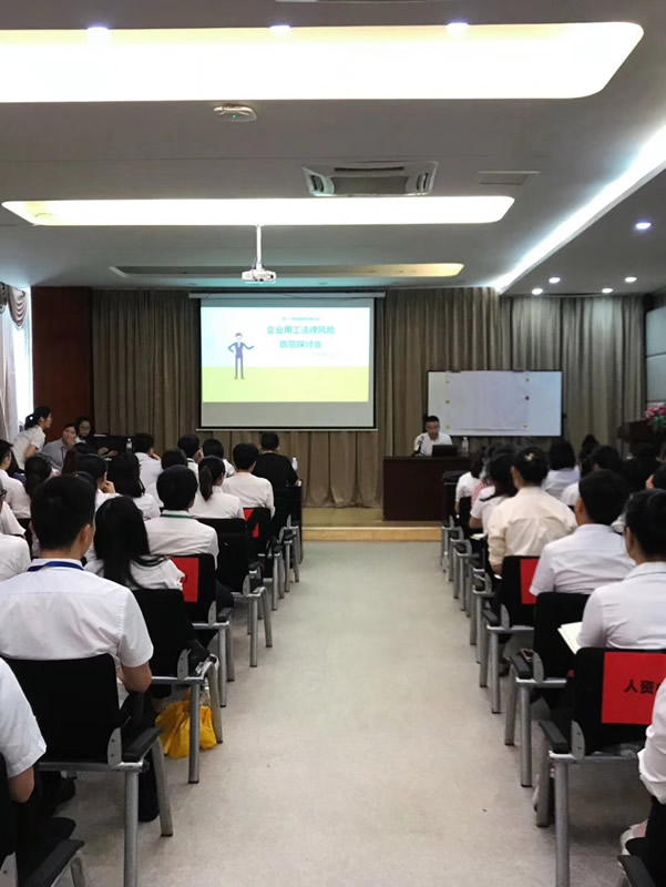 活动中,温正搭律师以企业用工法律风险防范为主题,从企业规章制度相关法律问题、劳动合同订立环节的风险及应对、劳动合同的解除和终止的风险防范三部分展开,通过实际案例,指导企业管理人员有效把控合同订立、合同履行、财务管理等环节的法律风险点。同时针对一鸣公司的企业经营情况,提出合理化建议。