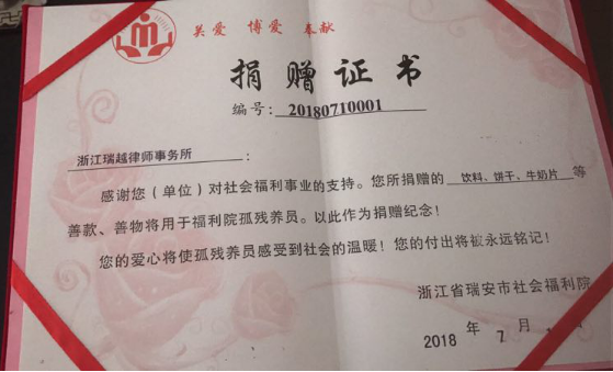 7月10日上午,中共瑞安市瑞越律师事务所党支部组织全体党员律师到瑞安市社会福利院开展主题为“走进福利院,传递爱”的党日活动。