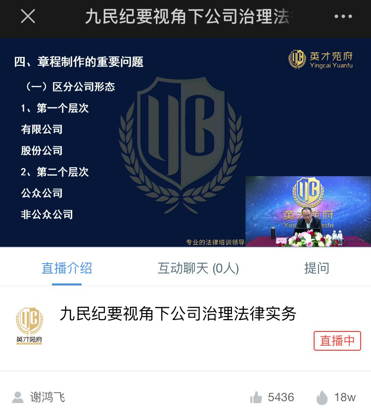 4月11-12日,温州律协联合英才苑府法律教育网开设线上课堂,以在线直播培训的方式开展培训,邀请中国社会科学院法学研究所民法研究室主任、博士生导师谢鸿飞作《九民纪要视角下公司治理诉讼与非诉实务研讨》专题讲座。全市律师及实习律师踊跃参与,在线人数超600余人。