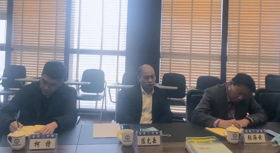 4月13日,鹿城区副区长陈允岳走访市律协开展座谈,区司法局局长张海云、区府办副主任柯特、区司法局副局长程坚毅陪同调研。市律协会长叶连友、副会长江丁库、严凌振,市律协鹿城分会副会长肖立锋、李效等参加座谈。