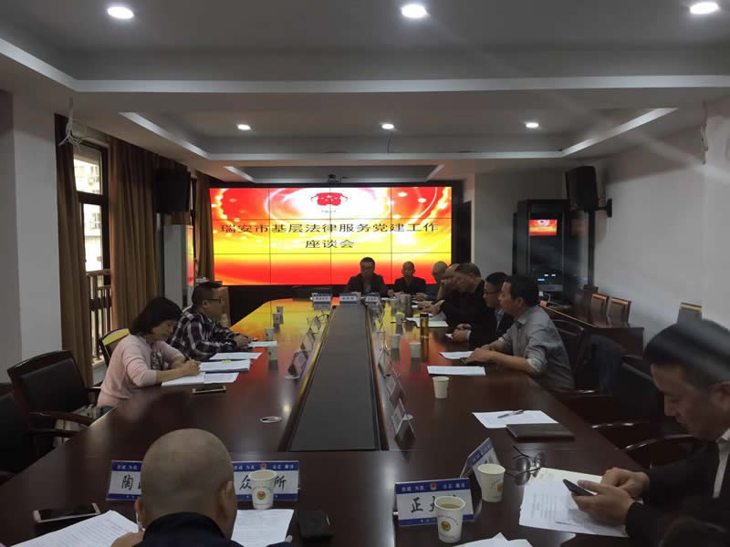 10月24日,温州市司法局律师管理处处长、温州市律师协会秘书长袁旭清一行4人来瑞调研指导法律服务党建工作,开展律师事务所和基层法律服务所百分制检查考核和“双随机”抽查。瑞安市司法局党组书记、局长陈智勇和副局长章红云陪同调研和考核工作。