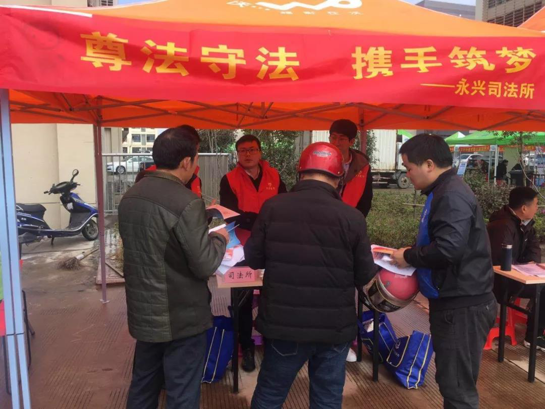近日,龙湾区永兴街道小微园区正在举办红红火火的新春招聘会。浙江东瓯律师事务所党员律师蒋鹏宇联合司法所工作人员在招聘会现场开展法律援助公益宣传。