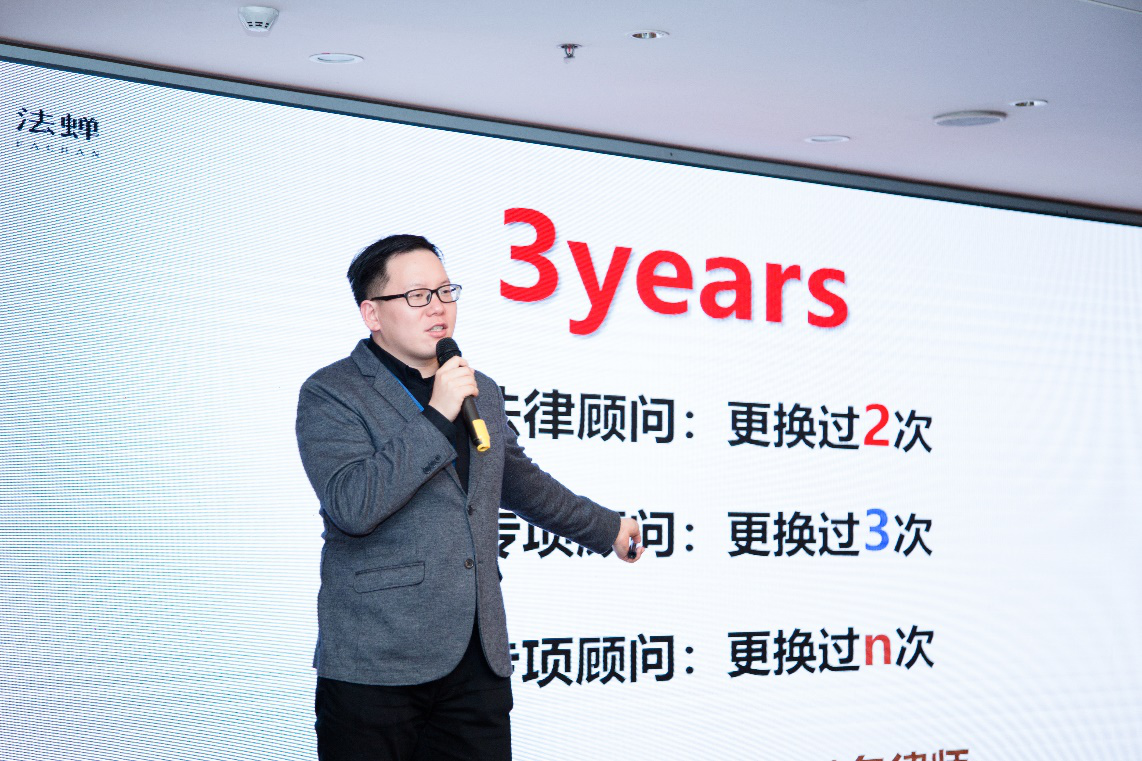 第二位分享嘉宾是法蝉联合创始人赵晓阳。赵晓阳围绕法律科技发展、律师执业能力升级、团队管理服务能力升级这三大方面展开分享,直言未来十年一定是中国法律服务发展的黄金十年,而技术不应成为各位律师恐慌的理由,反而会是一种能够提升法律服务创新能力的红利。