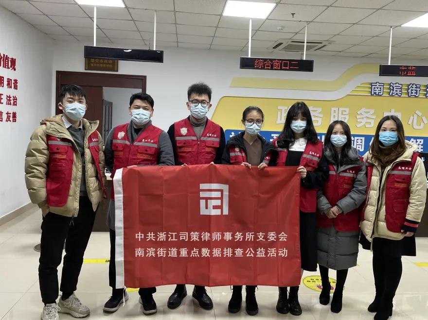 2022年1月20日,司策所党员律师一行7人来到瑞安市南滨街道,开展“助力疫情防控,彰显责任担当”公益活动,为疫情防控数据排查提供支援。