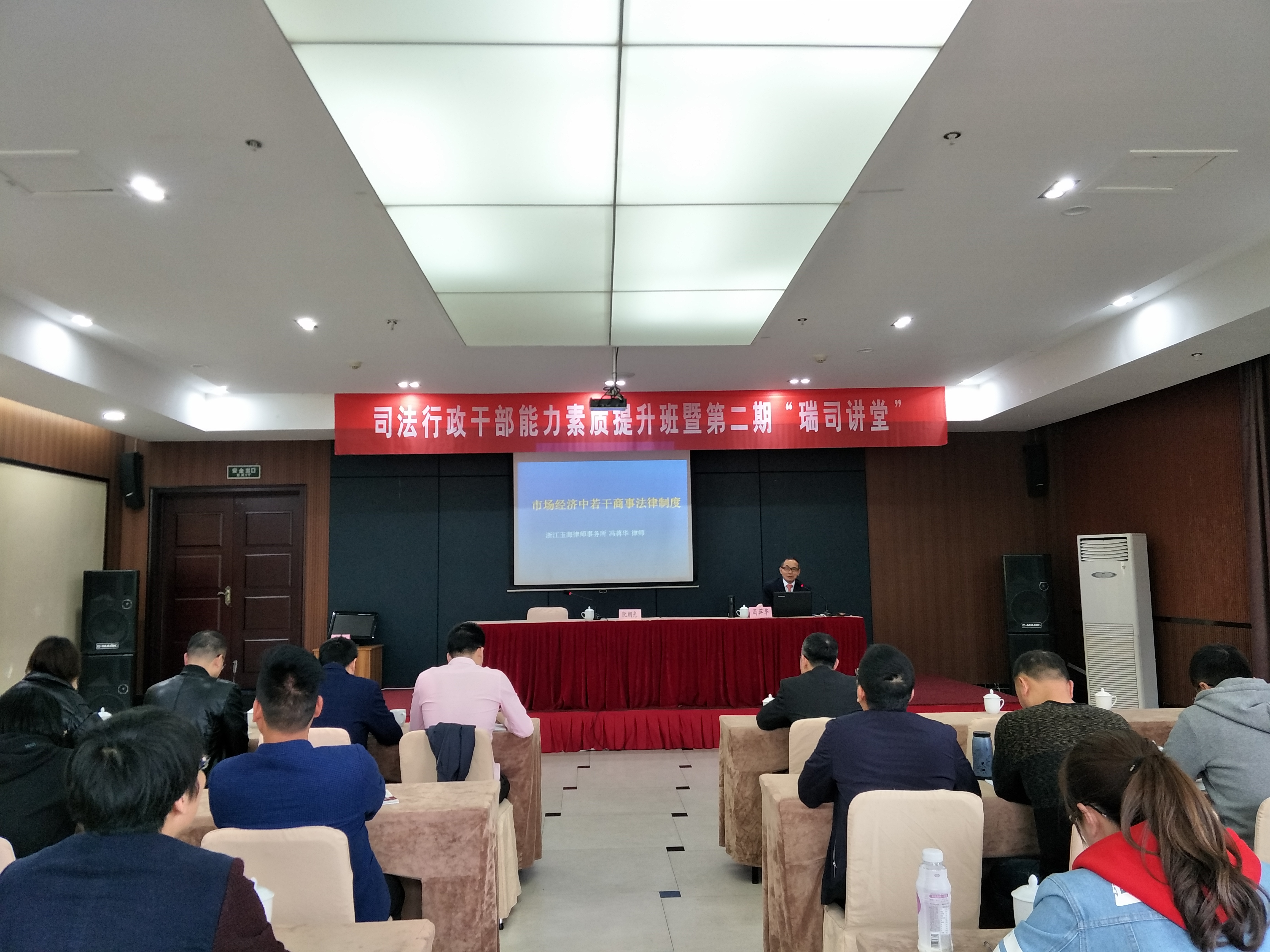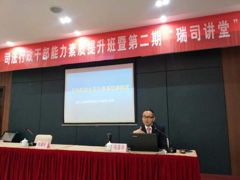 翌日上午,冯蒋华律师又受邀为瑞安市司法局工作人员作了《市场经济中若干商事法律制度》的主题讲座。讲座中,冯蒋华律师结合司法行政工作特点,以法人及公司制度的渊源作为切入点,深入浅出地讲解了我国商事法律制度的一些理论和实务方面的知识,获广泛好评。