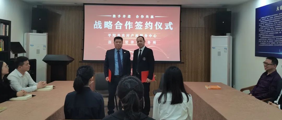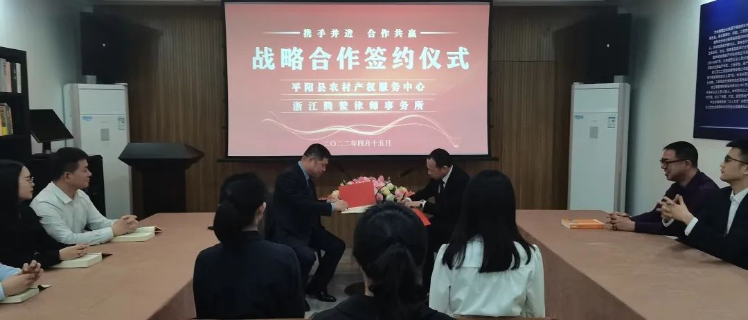 2022年4月15日,浙江腾鳌律师事务所与平阳县农村产权服务中心正式举行战略合作签约仪式。