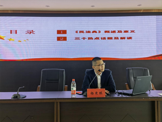 本次讲座,杨寒琪紧紧抓住《民法典》贴近生活的特点,围绕“民法典的由来”、“婚房归属”、“继承人范围“等三个话题,展开讲解了与人民群众日常生活息息相关的法律问题,并将《民法典》的创新内容分享给大家,会场上气氛热烈。