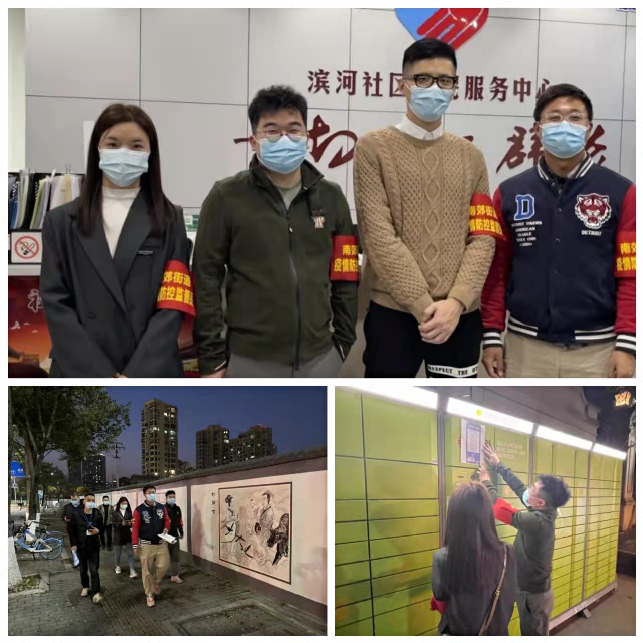 .小组5:走访滨河社区辖内6个小区,在快递柜上张贴消杀告知书,协助滨河社区工作人员整理排查数据、电话确认流调数据和系统输入。