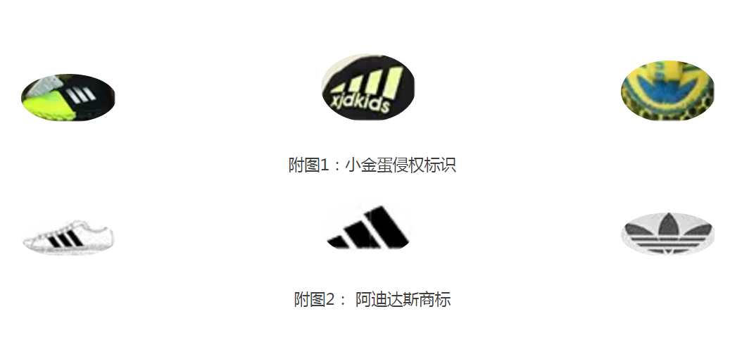 法庭上,小金蛋公司辩称自己销售的涉案产品等标识与阿迪达斯的不相同、不近似,在网络上搜索阿迪达斯的商标也不会出现自己产品的相关信息,而且侵权鞋子上以及网店上均标注了被告自己的品牌,不会使消费者产生误认,所以并没有侵犯阿迪达斯的商标专用权。网络销售客观存在刷单及退货的情形,销量及金额跟网页显示的内容不一致。此外,对于在鞋子上出现的类似阿迪达斯商标的标识,小金蛋公司辩称,这些并非产品的“商标”,而是鞋子的造型和图案而已,因此不存在侵犯商标权一说。
