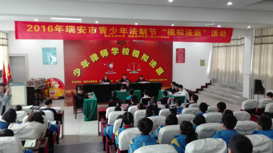 2016年12月2日,为庆祝第十六个“全国法制宣传日”,瑞安市局联合浙江品和律师事务所、瑞安市第二实验小学在瑞安市第二实验小学举行少年律师学校“模拟法庭”活动。
