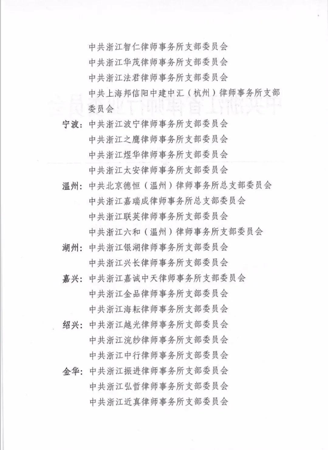 我市4家律师事务所获第一批“浙江省 ‘三强双进’律师事务所党组织”