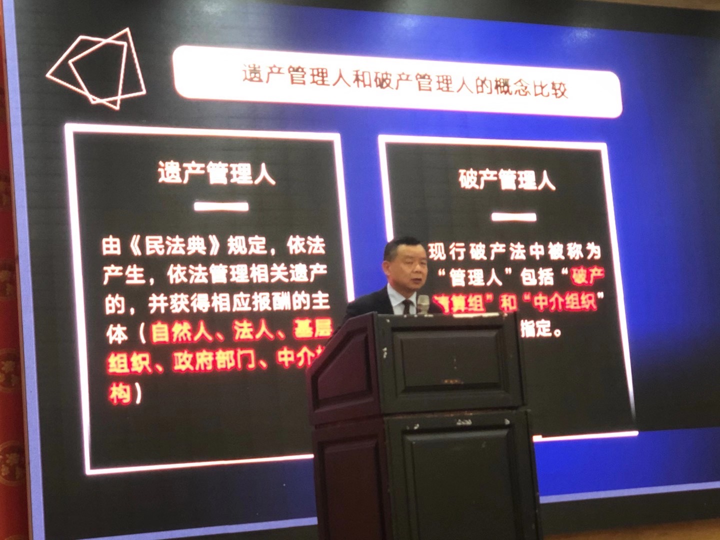 讲座邀请了林冰律师(北京市京师(深圳)律师事务所党委书记、创始人,在职博士,深圳市律协家族财富管理法律专业委员会主任、广东省律协婚姻家事专业委员会委员、华南国际经济贸易仲裁委员会调解专家)授课。他详尽讲述了《民法典》关于遗产管理人业务在深圳的开展情况,同时也无私分享了本人在新领域的业务开拓情况,接案技巧和沟通技巧等实务经验,令在座律师对新形式下的律师业务机遇有了新的全面认识。本次讲座由市律协婚家委主任、上海兰迪(温州)律师事务所执行主任叶剑秋律师主持,全场座无虚席,深受参加律师的好评。