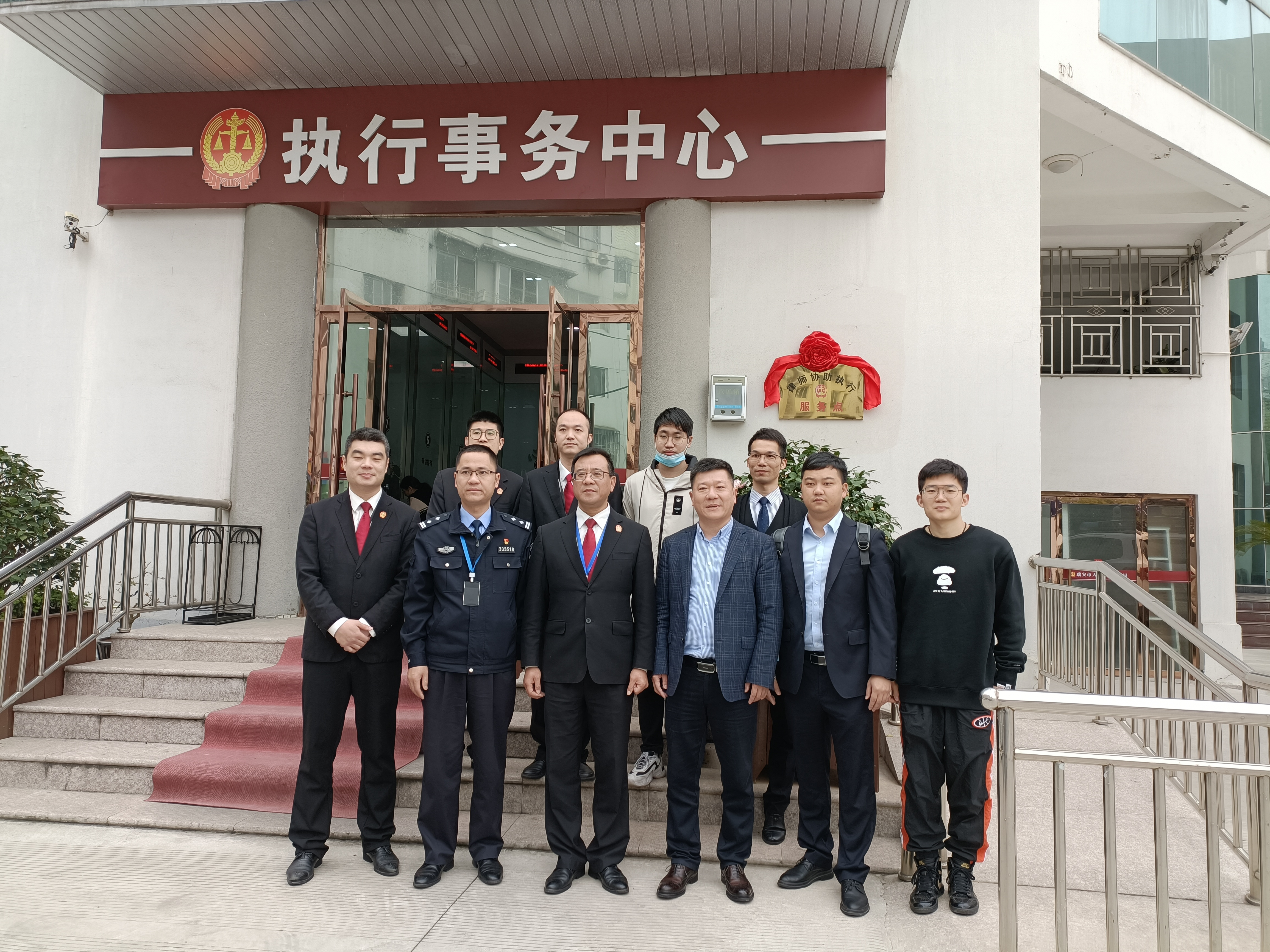 2021年46日上午,由瑞安市人民法院执行局、瑞安市司法局、温州市律协瑞安分会共同设立的律师参与执行工作服务点正式揭牌成立。瑞安市人民法院执行局陈金春局长、黄建丰副局长、温州律协瑞安分会周建深副会长等参加揭牌仪式。