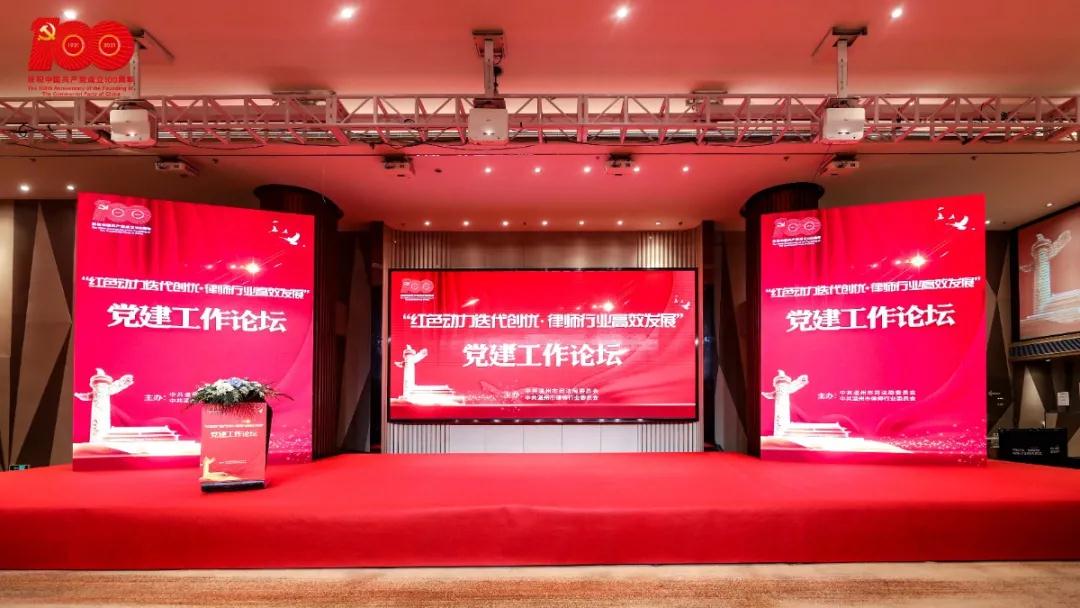 强律所必先强党建,党的建设是律师行业发展的重要基础,正值中国共产党建党100周年和习近平总书记对温州“非公企业党建”作出重要批示10周年之际,由中共温州市司法局委员会、中共温州市律师行业委员会主办的“红色动力迭代创优 律师行业高效发展”党建工作论坛于2021年6月8日召开。本次论坛旨在研讨和共商通过强化党的领导,实现律师行业党建与业务深度融合,切实推进以党建带队建促发展。省司法厅党委委员、副厅长钱德海,市政府副市长李无文,省委党校教育长骆梅英,省律师协会会长郑金都以及市委党校、市两新党务工作者协会负责人,全省各地市律师行业党委的负责同志受邀出席。