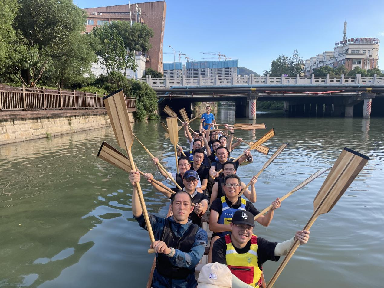 参观结束后,各单位在专业教练的带领下组队在“赛、赛、赛”的呐喊口号中进行划龙舟友谊赛。大家通力协作充分发挥团队精神,展现出了良好的精神风貌。