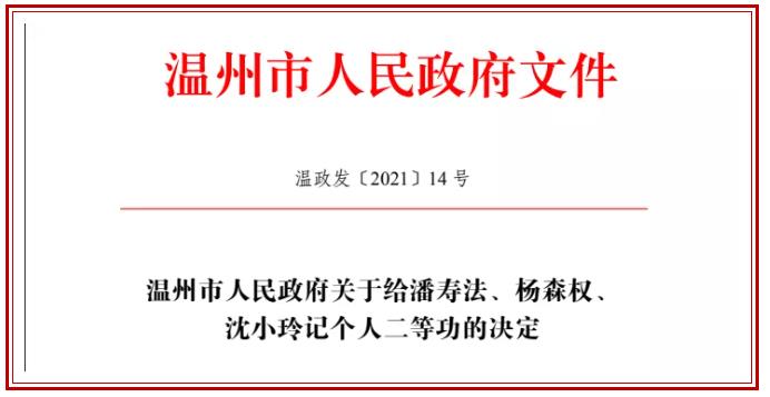 近日,温州市人民政府给予浙江安阳律师事务所工作人员沈小玲记个人二等功一次。