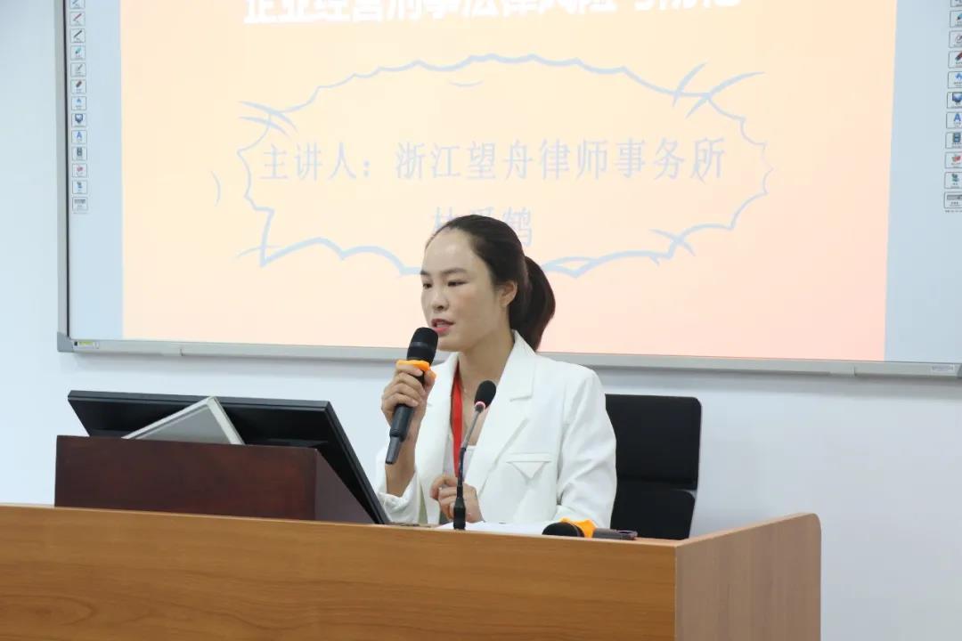 期间,董慧敏律师、林爱鹤律师分别就生产经营过程中遇到的民事问题、企业经营刑事法律风险与防范进行讲解。