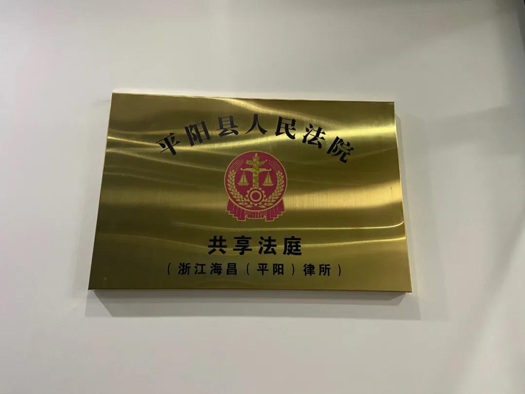 近日,浙江腾鳌律师事务所、浙江越人(平阳)律师事务所、浙江海昌(平阳)律师事务所正式挂牌平阳县人民法院"共享法庭"。成为平阳县人民法院首批 "共享法庭"试点律所。
