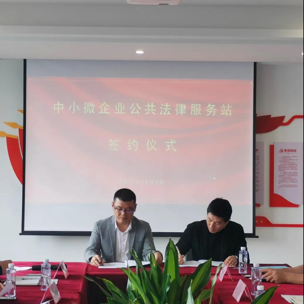 2021年11月2日上午,在华商智造园会议室召开了中小微企业公共法律服务站的签约仪式。标志着律所和苍南县工业园区所属区域内的华商智造园、新奥士小微园、欧罗巴小微园正式建立“中小微企业公共法律服务站”。苍南县司法局副局长胡哲伟、法管科长胡朝溪、苍南县工业园区副主任施成义、华商智造园党总支部书记黄斌、温州市欧罗巴新欧管理有限公司董事长林立、浙江望舟律师事务所相关负责人及律师服务团队参加了此次签约会议。