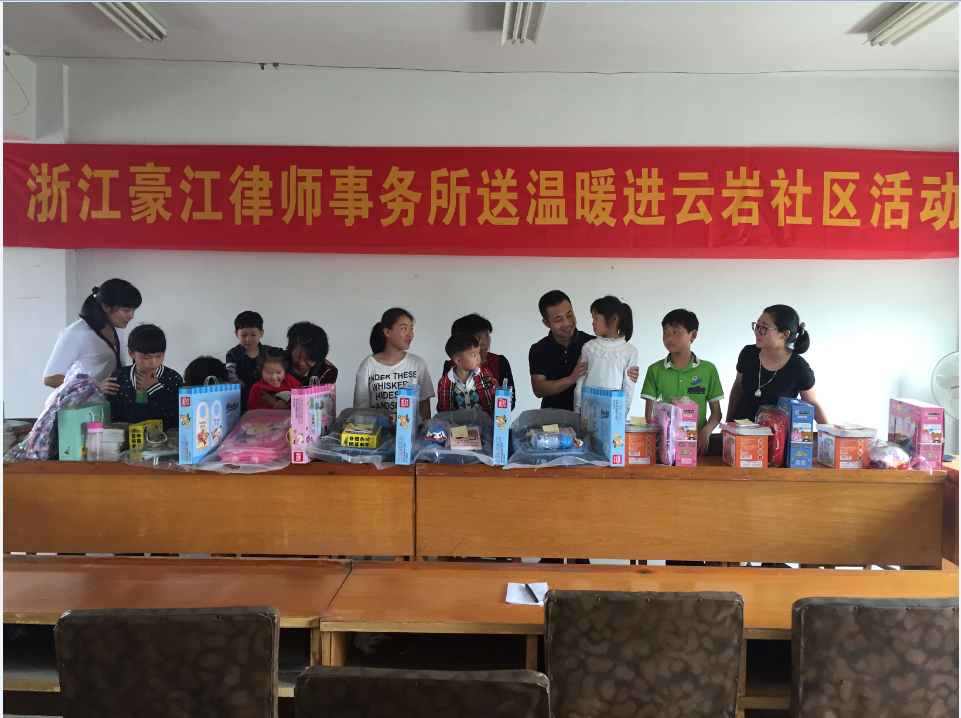 一走进家庭。张安友律师一行前往社区留守儿童家中,与多名留守儿童及其亲属进行了亲切交谈,仔细询问他们的家庭生活情况以及生活中遇到的困难等,并借机向其亲属宣传预防未成年人犯罪的相关法律知识和维护留守儿童权利的相关渠道,提升其自我防范、自我保护、自我反思的意识。浙江豪江律师事务所的律师根据云岩社区工作人员的统计及推荐,挑选出十位留守儿童进行捐赠,根据十位儿童的学龄分别采购了适合的学习用品、书包、图书等,鼓励他们好好学习,多与远在外地的父母沟通交流,帮助帮助孩子们实现自己的小小心愿。
