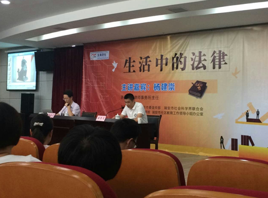 2015年9月19日下午15时,新一期玉海讲堂在瑞安市图书馆一楼多媒体大厅隆重开讲。受瑞安市委宣传部的邀请,浙江瑞大律师事务所主任杨建崇律师为到场的300多名市民讲解了一场题为《生活中的法律》的专题讲座。