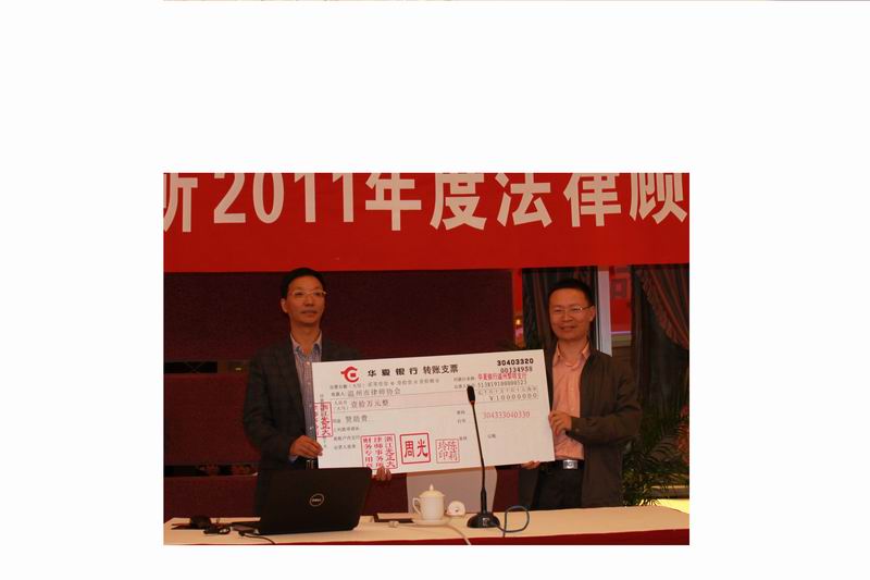 今年是光正大所成立15周年,为了使所庆活动更务实和更有意义,该所合伙人会议决定把10万元原定用于庆祝活动的经费捐赠给温州市律师协会,以促进律师协会更好地发展,为全市律师服务。日前,在该所召开的2011年度法律顾问工作会议上,举行了捐款仪式,光正大所陈兴良副主任将10万元捐款支票移交给了温州市律师协会秘书长甘细平。