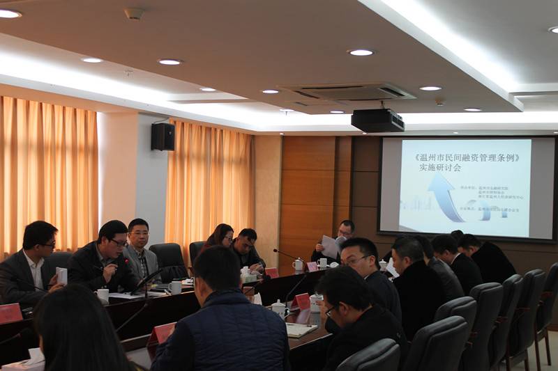 2014年2月23日,针对将于2014年3月1日正式施行的《温州市民间融资管理条例》及其细则,温州市律师协会、金融研究院暨温州大学金融研究院与浙江省温州人经济研究中心在市司法局会议室联合举办《温州市民间融资管理条例》实施研讨会。此次座谈会邀请了在温高校专家学者、律师、银行代表、民间融资公共服务机构代表、民间融资信息服务企业等三十余名金融界人士参加。