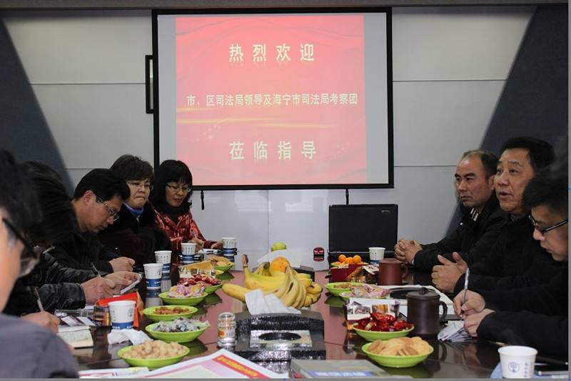 2013年1月11日,海宁市司法局考察团莅临我所,考察了解光正大所律师服务中小企业的情况。鹿城区司法局张小庆副局长、律管科胡笑华科长等陪同考察。考察团一行受到光正大所主任周光、副主任王正善、叶林枫、陈兴良、张永谦、陈琨等热情欢迎。