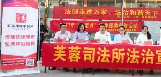 为贯彻落实十九大关于“坚持全面依法治国”的精神,构建“法治芙蓉”,10月26日下午,浙江联英(乐清)律师事务所农村法律顾问团联合乐清市法律援助中心、芙蓉镇司法所等六家单位,组成联合工作组赴乐清市芙蓉镇,开展以“法制走进万家、法治和谐天下”为主题的农村法制宣传活动。