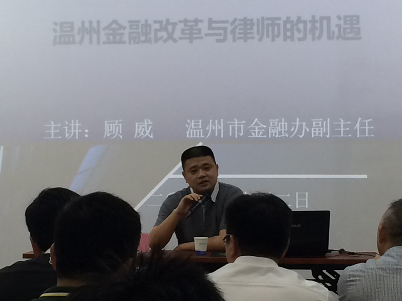 2014年7月2日下午,浙江诚鼎律师事务所主办的诚鼎法律大讲堂正式开讲。温州市人民政府金融工作办公室顾威副主任莅临本所,主持公司证券篇第一讲:温州金融改革与律师的机遇。