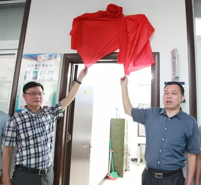 苍南县司法局副局长谢贱恩和苍南县检察院副检察长潘志强,在援助律师及相关工作人员的见证下,为该工作站进行了揭牌。
