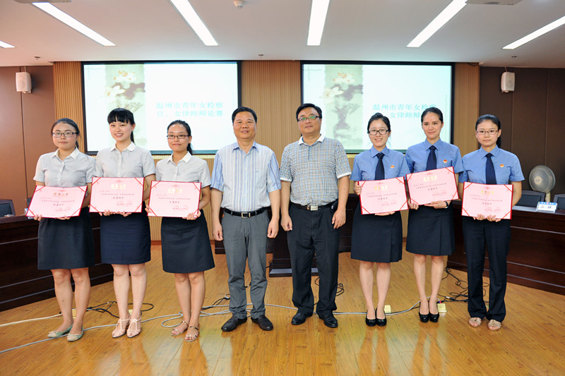 本次辩论赛邀请了温州市中级人民法院审判委员会委员柳志杰、温州市法制办副主任张红戈、温州大学法学教授毛毅坚担任对辩论赛决赛评委,毛毅坚教授还对选手们作了精彩的点评,让在场的女检察官和女律师受益匪浅。