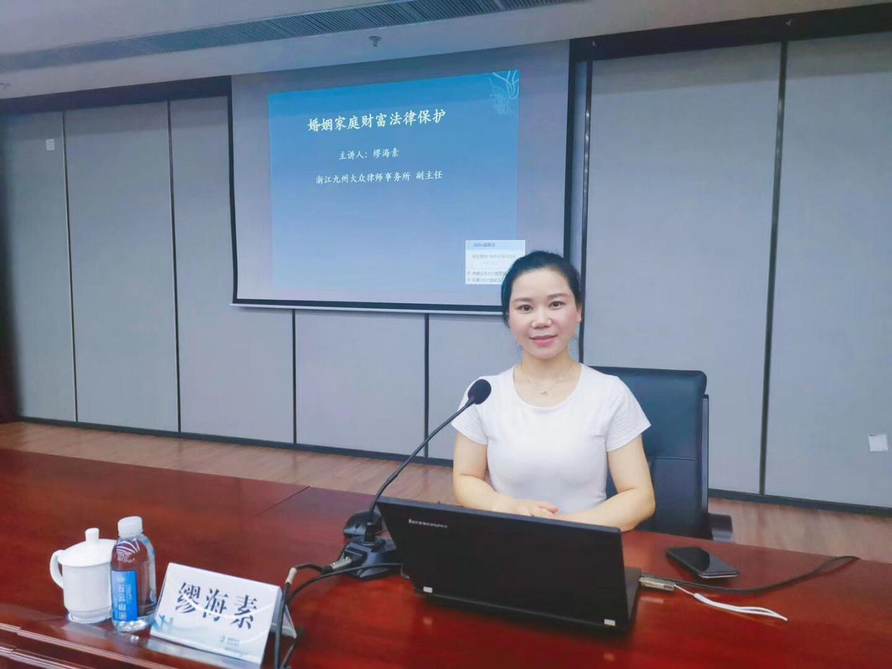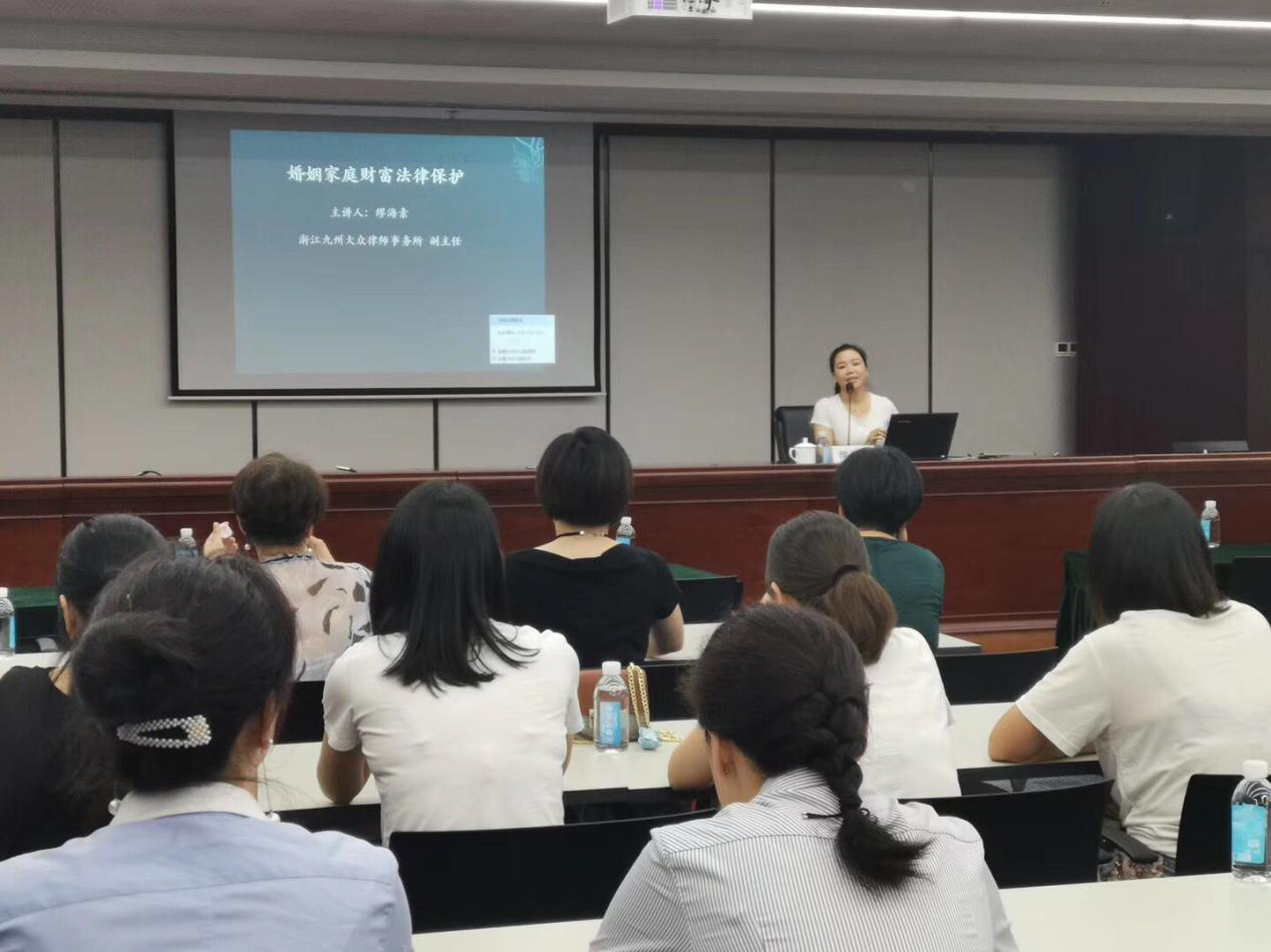 近日,浙江九州大众律师事务所缪海素律师受邀为平阳县供电局女职工开展“婚姻家庭财产保护”法律知识讲座,共计有50多名女职工聆听讲座。