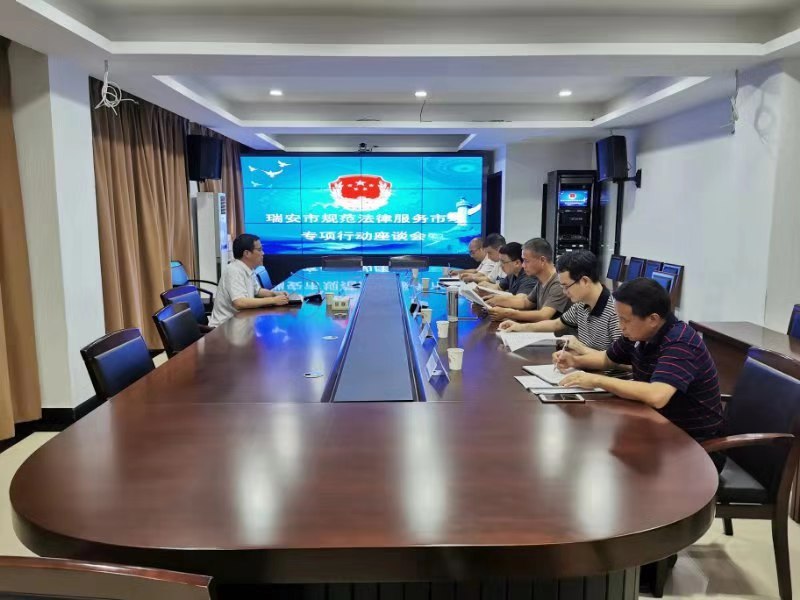 一、狠抓调查研究,制定计划措施。成立规范法律服务市场专项行动领导小组,制定具体实施方案。通过司法所(分局)排查、市监管理平台搜索比对、法律服务机构提供线索等方式,摸清瑞安市法律服务市场现状。召开市法院、市检察院、市公安局、市市场监督管理局和市综合行政执法局等部门参加的座谈会,分析当前法律服务市场存在的问题,研究制定针对性的措施,部署联合执法检查工作。目前瑞安市除具有执业资格的16家律师事务所和10家基层法律服务所外,还有6家持有工商营业执照的“法律信息咨询单位”,提供法律咨询、代书等法律事务服务。