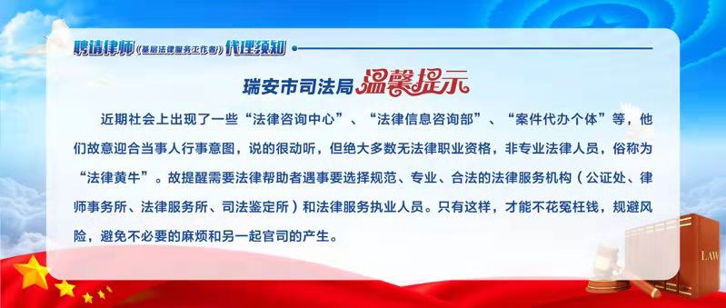 瑞安市针对“法律信息咨询单位”虚假广告宣传、非法经营现象,练好管理内功、强化部门衔接外功、推进联合执法检查,始终保持高压态势,初步实现了新“法律信息咨询单位”不增加,旧“法律信息咨询单位”逐年减少的预期目标,“法律信息咨询单位”数量从原来的13家降至了目前的6家。
